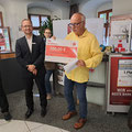 begrüßt. V.l.n.r: Regina Blechschmidt sowie Hans Weisbach im Gespräch mit Rainer Döhling.