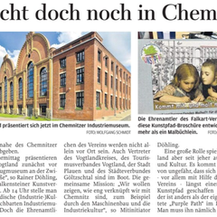 Mit großer Beharrlichkeit ist es einer vogtländischen Initiative gelungen, sich inmitten des Kulturhauptstadtjahres und im Herzen der Chemnitzer Industriekultur als Region sichtbar zu machen. Der Falkensteiner Kunstförderverein falkart e.V., seit langem aktiv als Vermittler vogtländischer Kultur, konnte mit Unterstützung durch den Tourismusverband Vogtland sowie dem Vogtlandmuseum Plauen am Sonntag zahlreichen Besuchern die Region präsentieren - in der Höhle des Löwen quasi. „Gerne hätte das Vogtland diese Bühne, die ihm gebührt, intensiver genutzt, doch die Organisatoren der Kulturhauptstadt haben das Vogtland hierfür nie priorisiert“, beschreibt falkart-Chef Rainer Döhling ein altbekanntes Problem. Zunächst im Fahrzeugmuseum in der Zwickauer Straße und nachmittags im Industriemuseum griff das Team das Motto der Kulturhauptstadt: „C the unseen“ auf und brachte ein überregionales Publikum zum Staunen. Denn die Menge des „Ungesehenen“ im Vogtland ist doch weitaus größer als das bisher Bekannte. Besonders bewegt hat, dass sogar Vogtländer extra angereist waren. So überraschte unter anderem der Besuch von Hans Weisbach und der Buchautorin Petra Macht am Stand, deren Buch zur Geschichte des Weisbachschen Hauses übrigens auch im Industriemuseum angeboten wird. Angetan von der Initiative engagierten sich sogar kurzzeitig mit am Stand: „Die Verbindung von Plauen und Chemnitz war industrie-historisch sehr fruchtbar und verhalf beiden Regionen zu Wachstum und Wohlstand“, erklärt Petra Macht, warum das Buch auch in Chemnitz auf berechtigtes Interesse stößt.