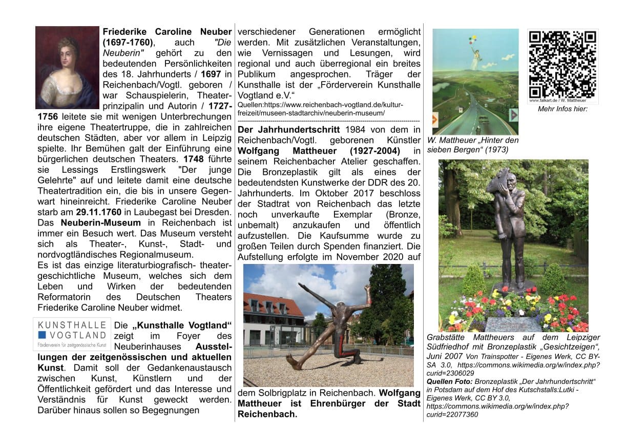 Geht gemeinsam auf eine Reise durch Raum und Zeit, in einem Land das Vogtland heißt, das reich an kulturellen Schätzen ist und viel Unentdecktes für euch bereithält.
